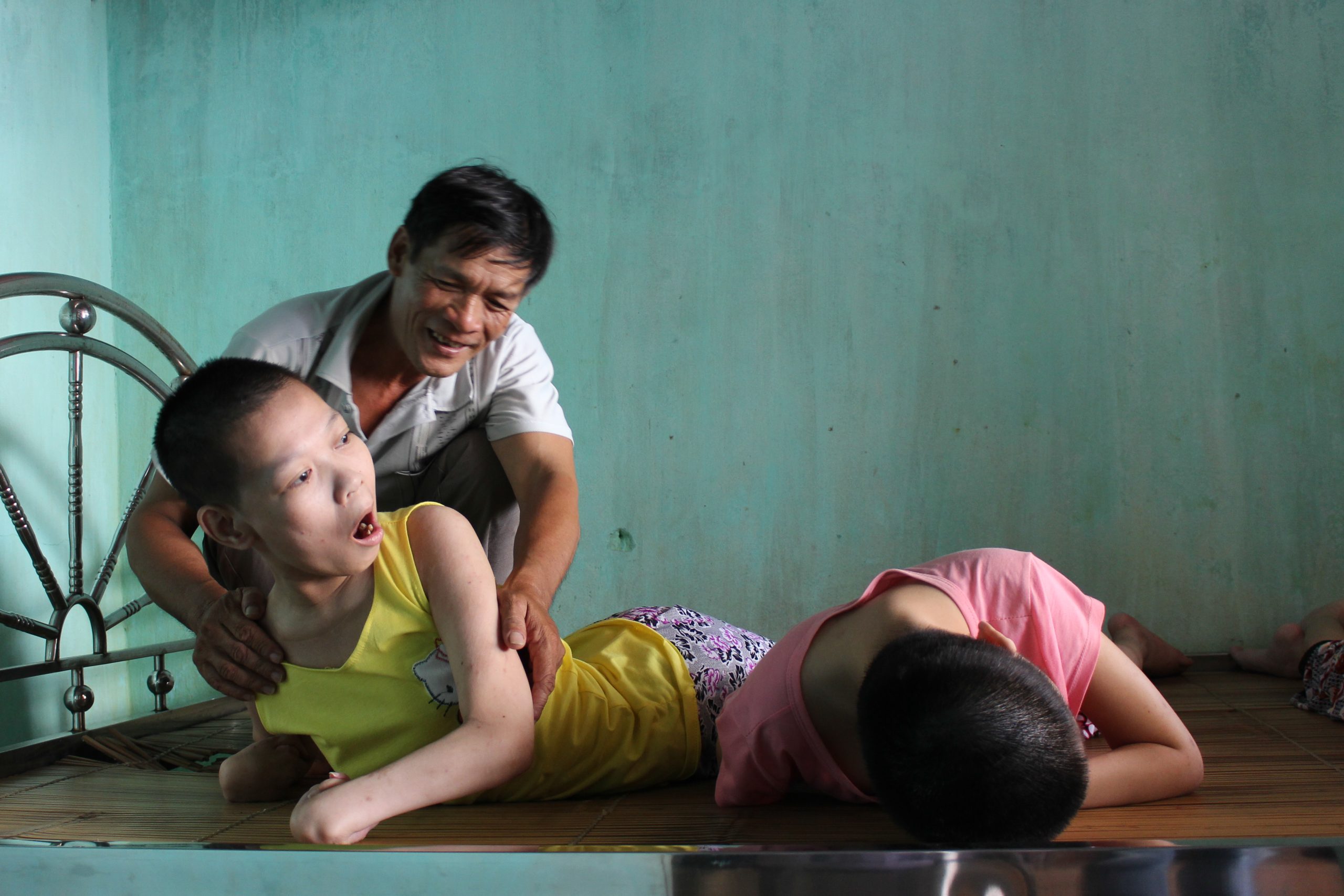 His family, in contrast, had been devastated. The first two children born to Mr Xoan and his wife Pham Thi Do died from “brain damage.” Their third child died after a miscarriage. The next two children were healthy but the couple’s youngest sons, Trung and Tuan, came down with creeping paralysis in their early teens. Their eighth child Luyen was born in 1992 with cerebral palsy and has been bed-ridden since childhood.