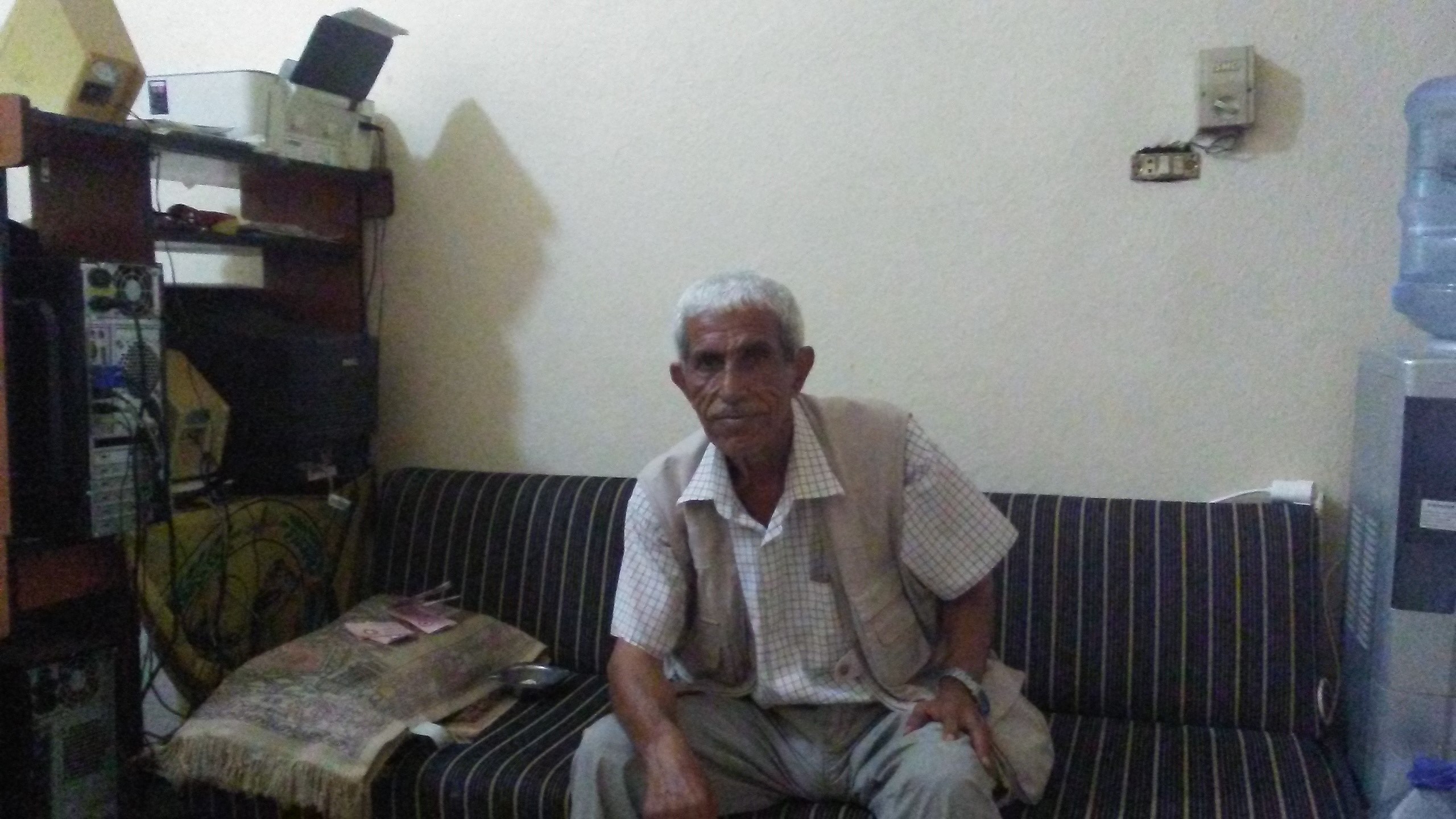 Bhola Nath Yogi looking through the records to find out the exact amount of the girls’ outstanding balance