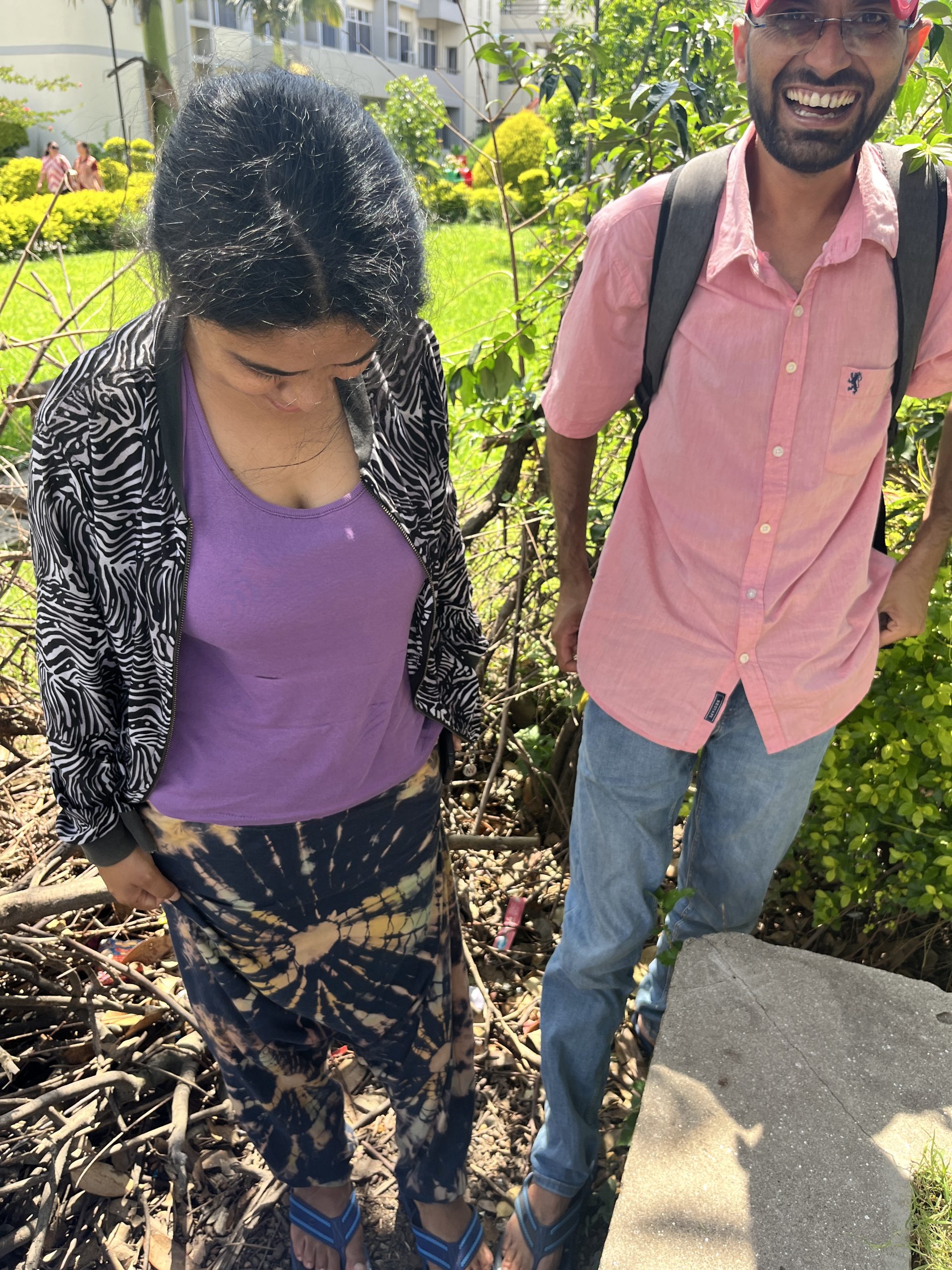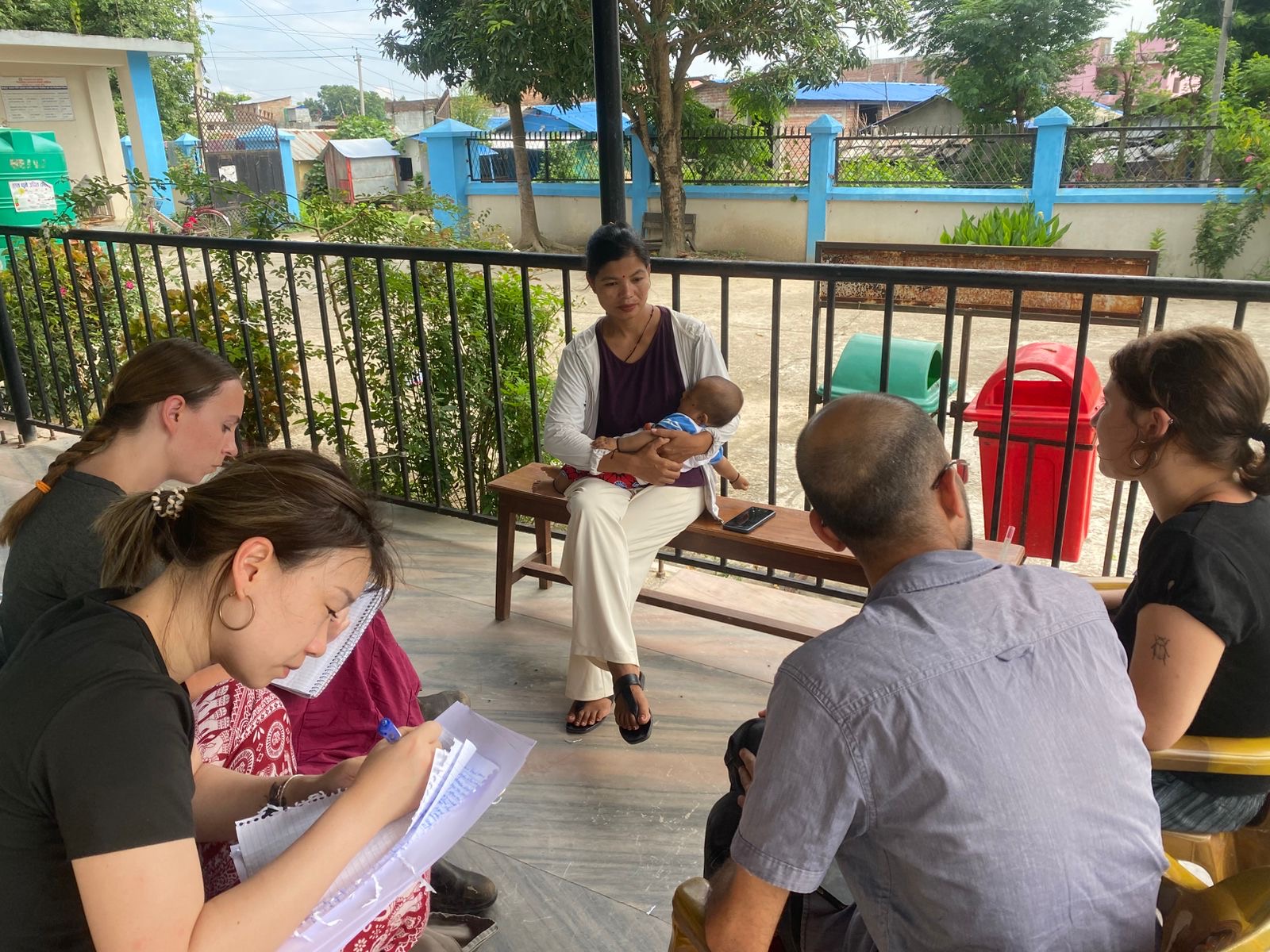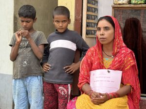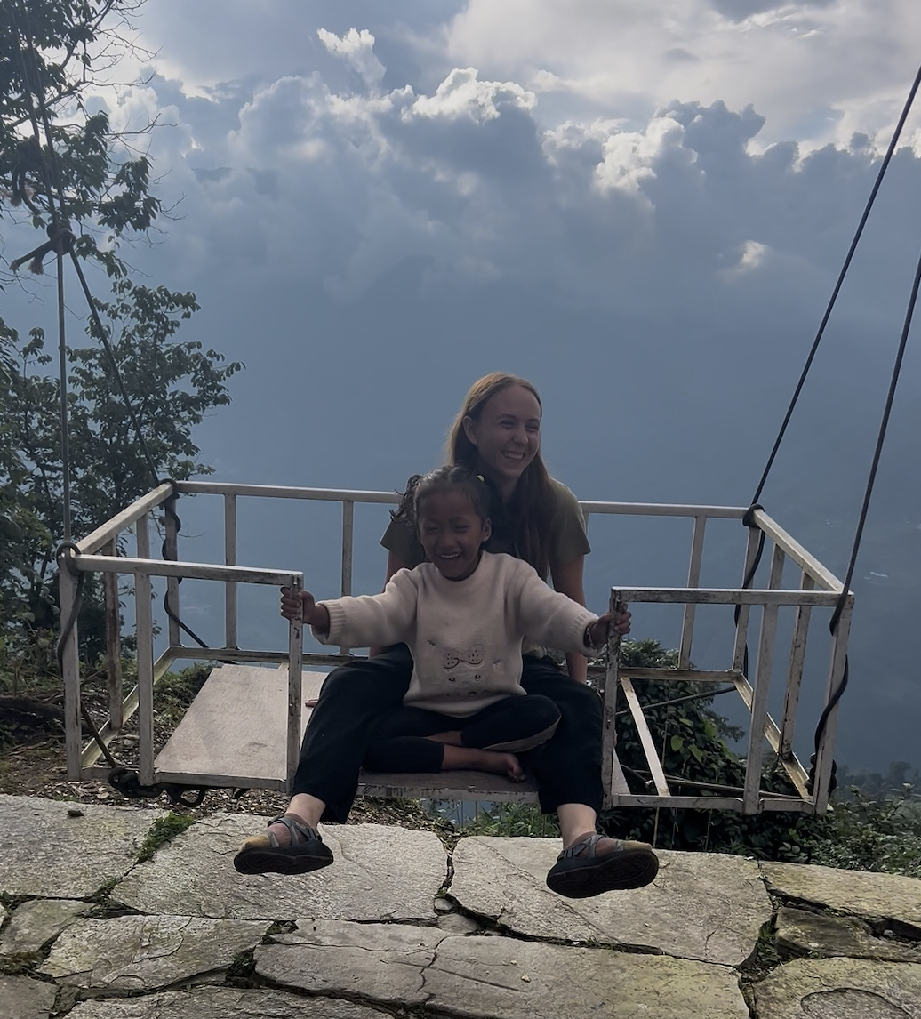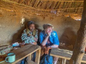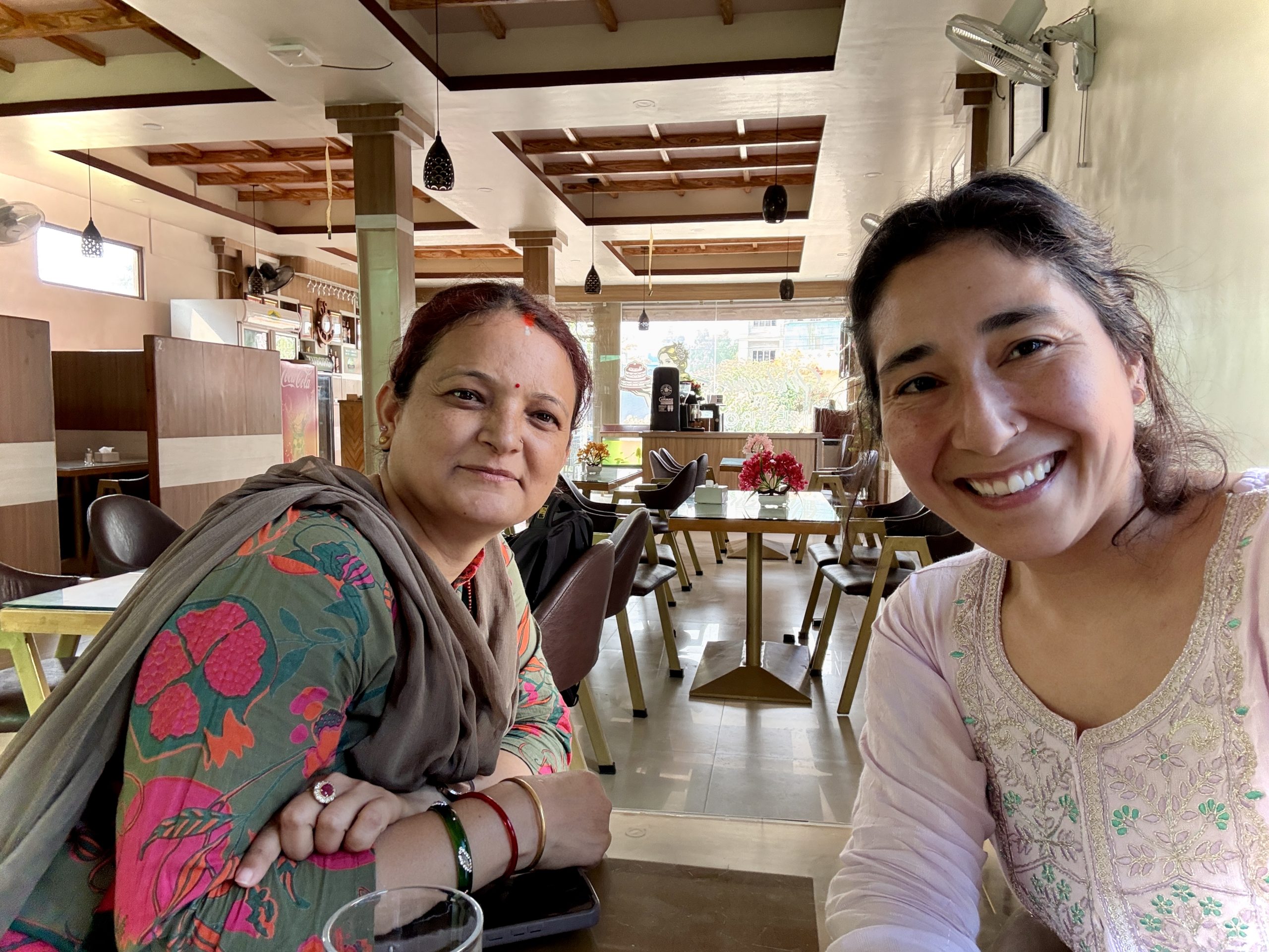 Sabita hiding behind Sima as I showed her a clip from The Price of Childhood: a documentary featuring Sabita
