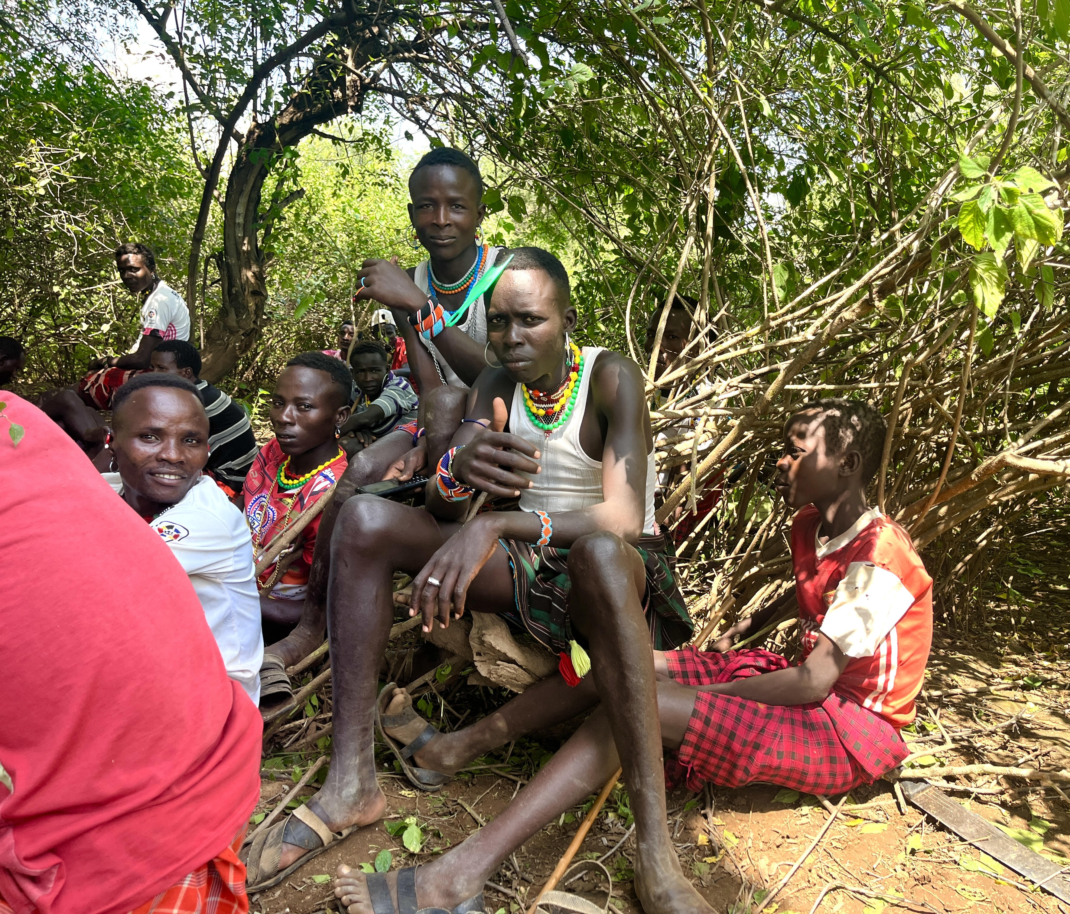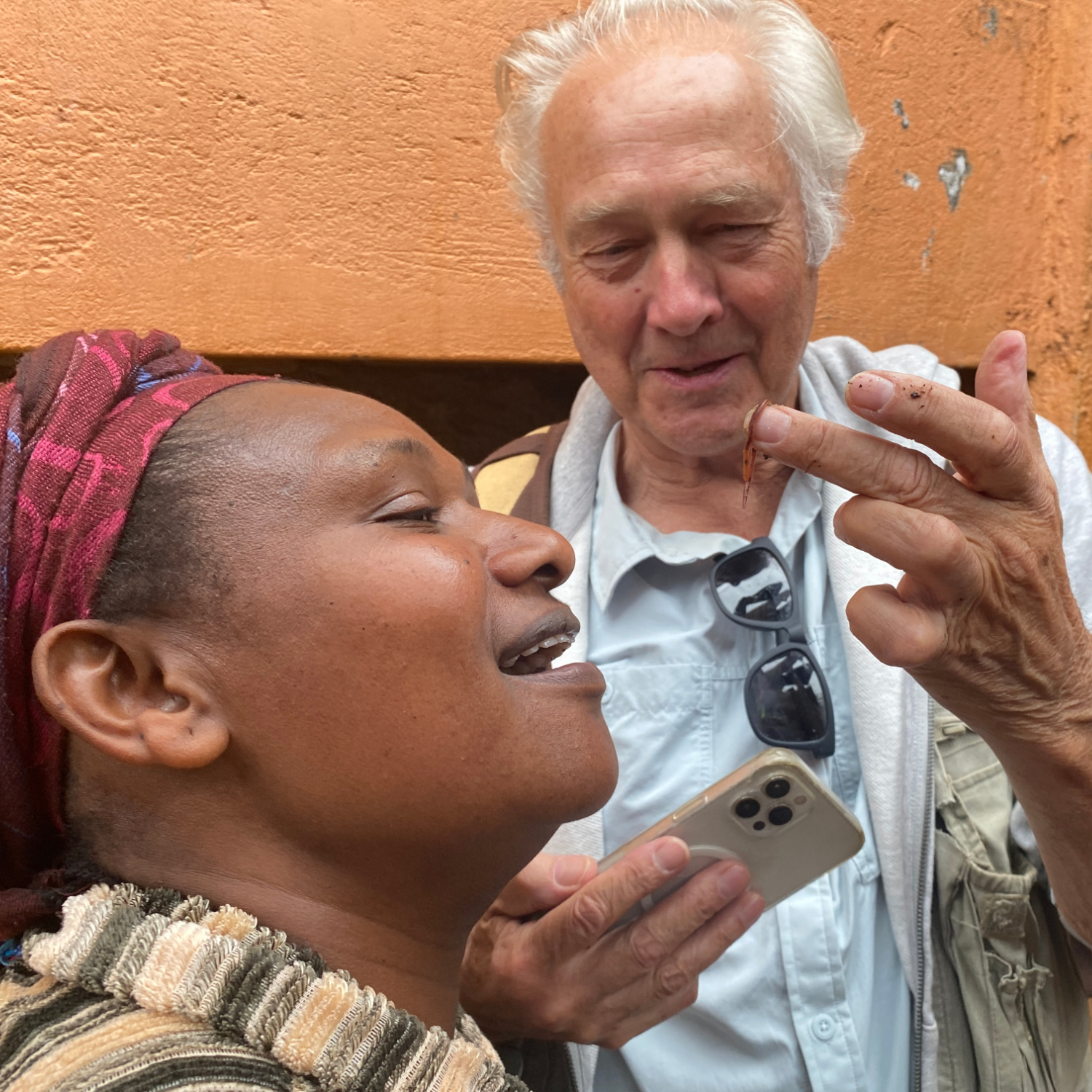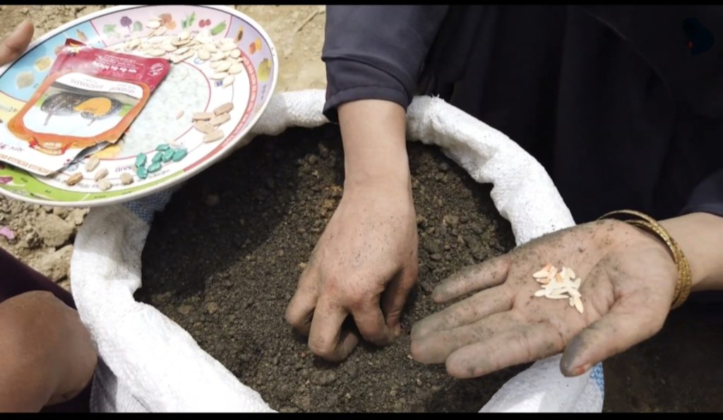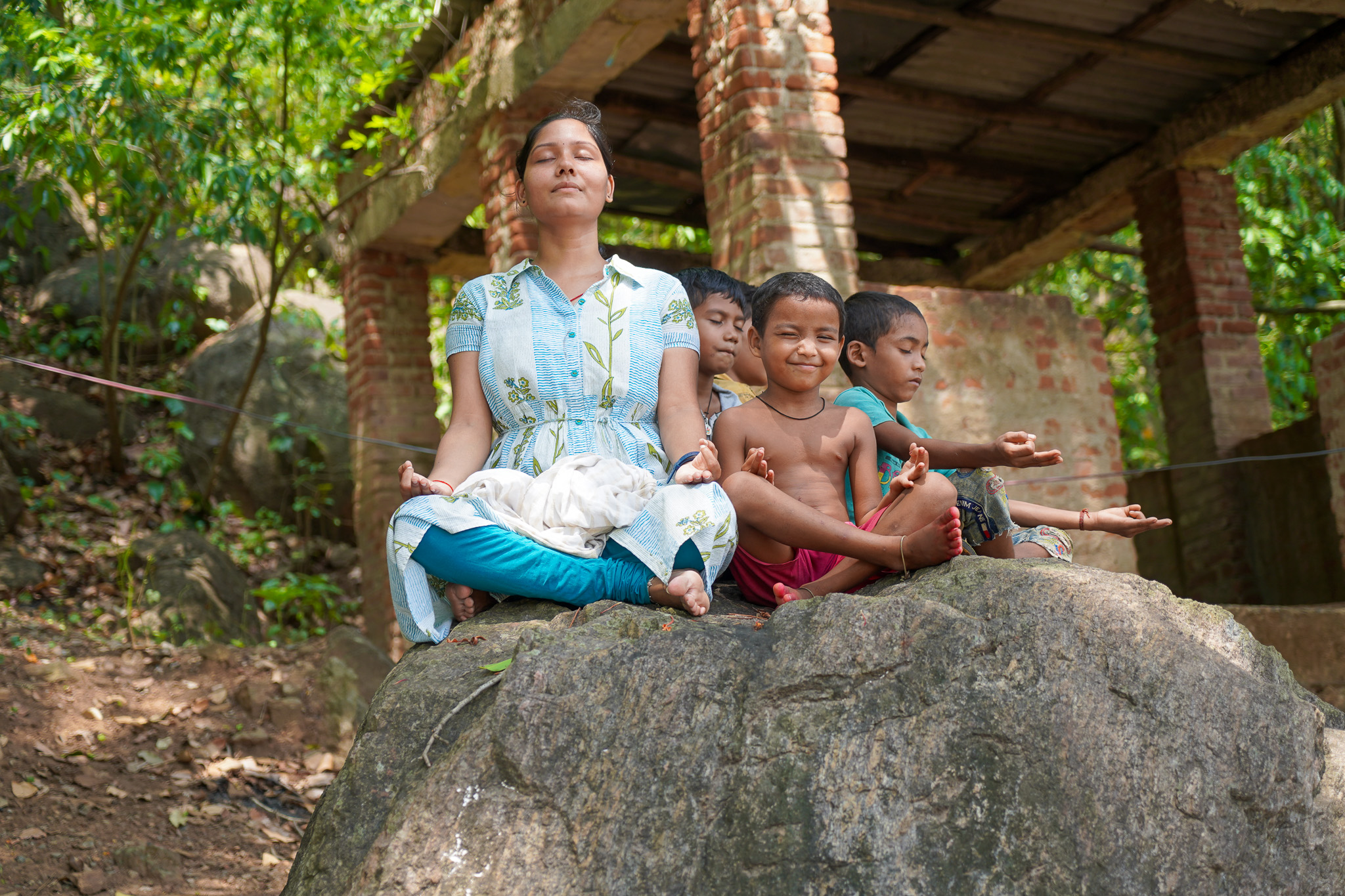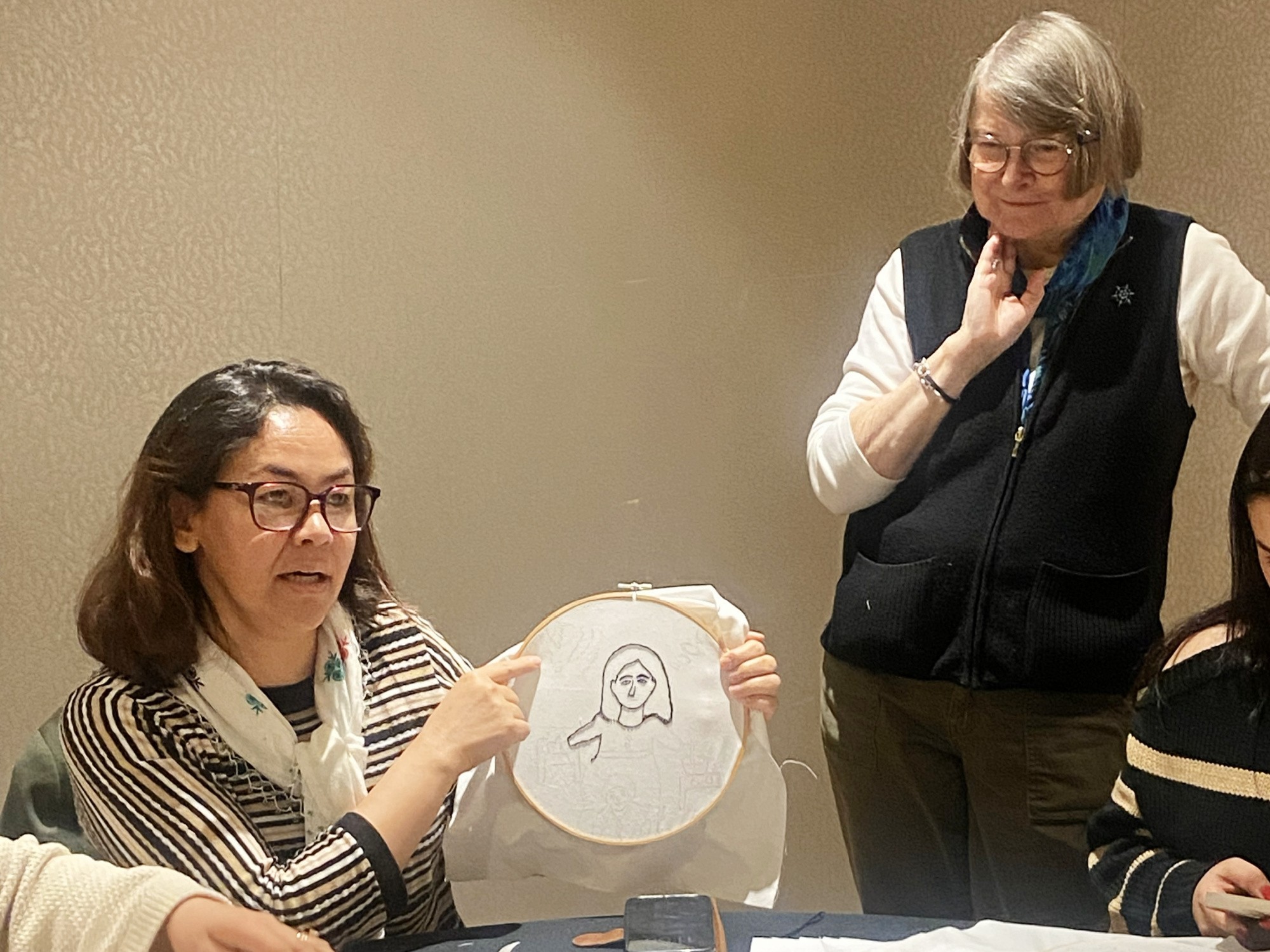 Sabita hiding behind Sima as I showed her a clip from The Price of Childhood: a documentary featuring Sabita