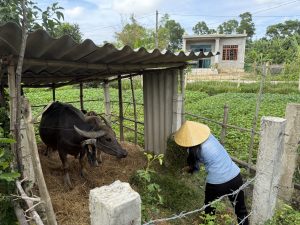 In trying to put this into words, we have several times drawn on the final blog of Jacob Cohn who was studying at the Fletcher School when he volunteered in 2017. Jacob met seven families, including Mai Thi Loi and raised $1,500 to buy a cow for Dong Thi An, as seen in the photo below. Mrs An has two children. One was going blind when Jacob met the family in 2017. The other suffered from Down Syndrome. Jacob wrote: