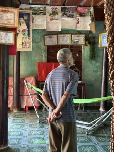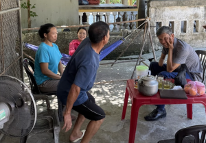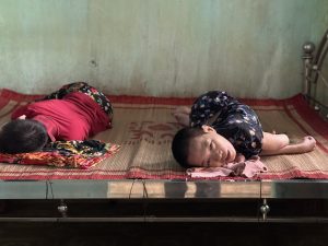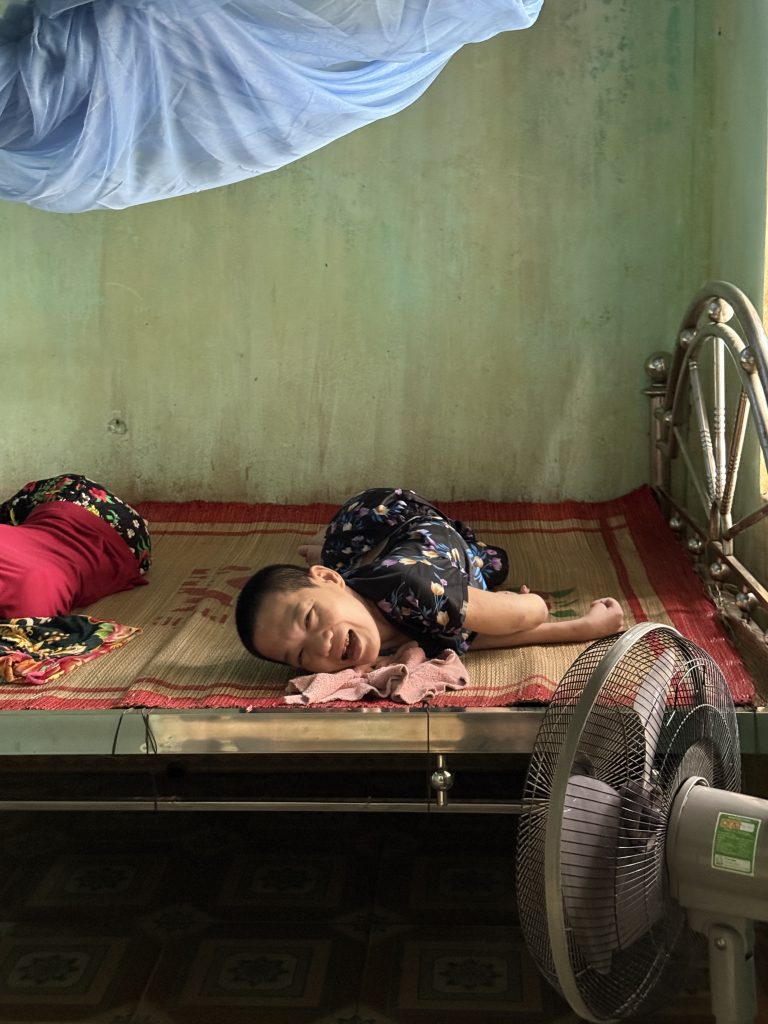 “The sight of me (a white, Caucasian, American male) sends Dung into a frenzy. He cries out in Vietnamese “Don’t let him arrest me! Don’t let him arrest me!” No one in the family treats this behavior as out of the ordinary, yet I am growing increasingly uncomfortable. However, Giang looks on softly, reassuring me: “it is ok, just wait.” Slowly, Dung calms down and limps to his mother.”