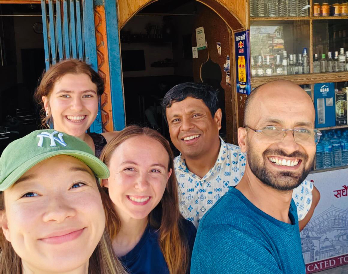 Sima (far left in gray) and Sabita (far right in pink) having breakfast at the Children’s Peace Home before heading to school
