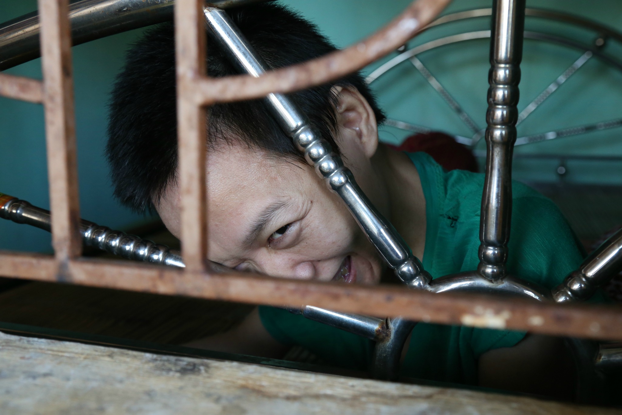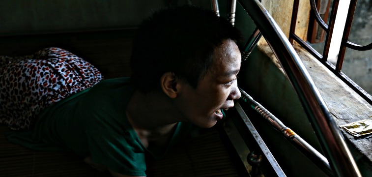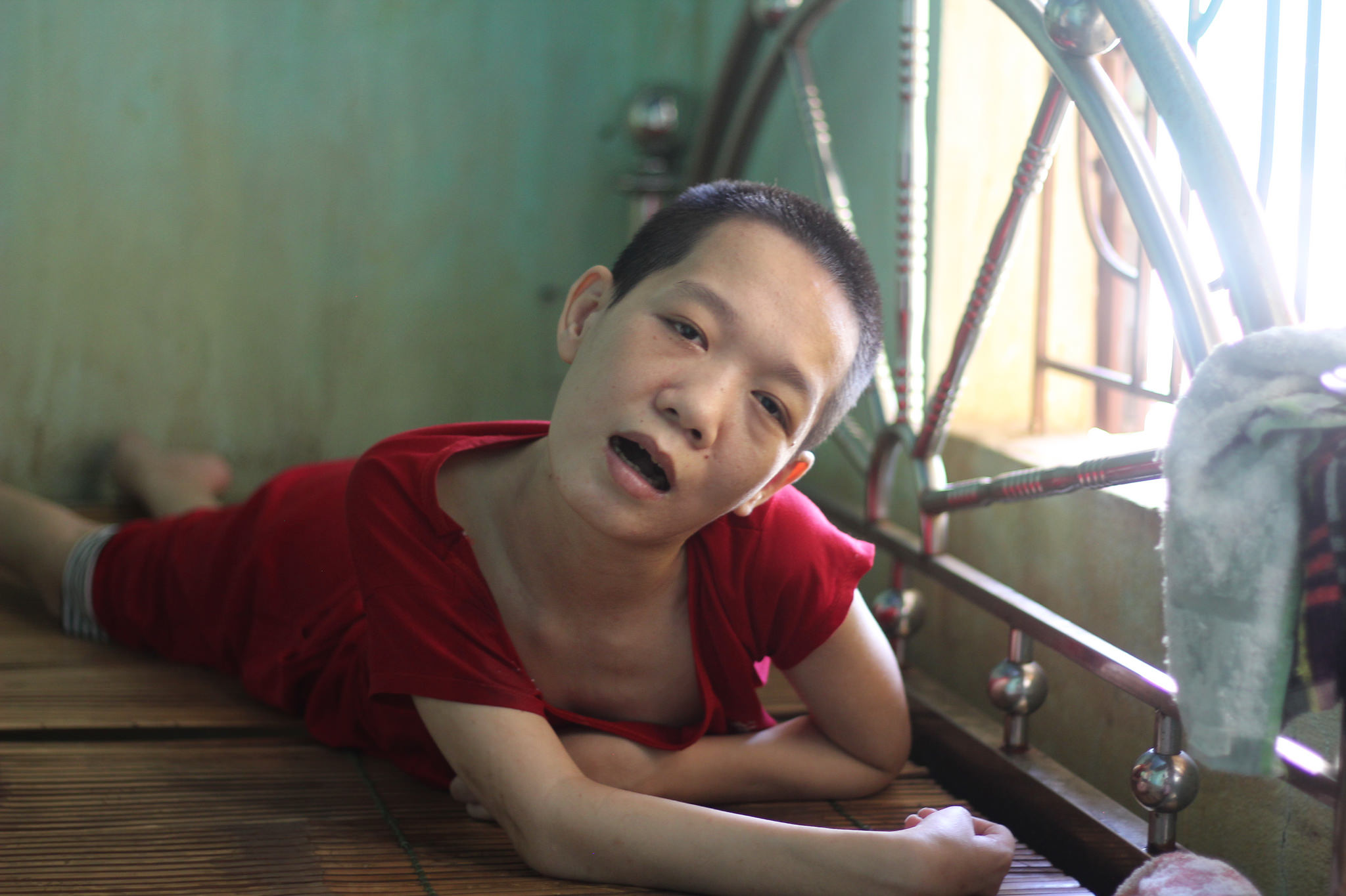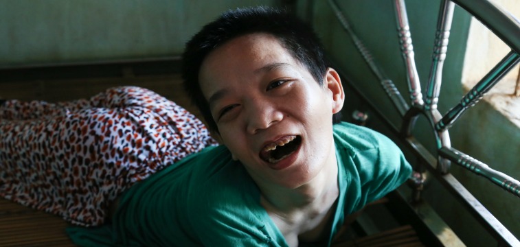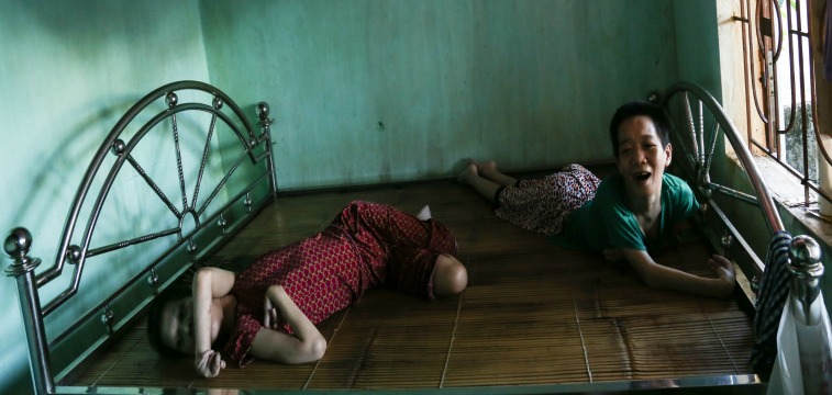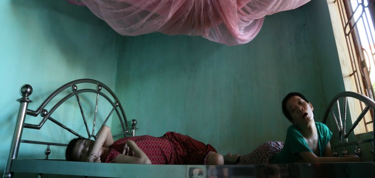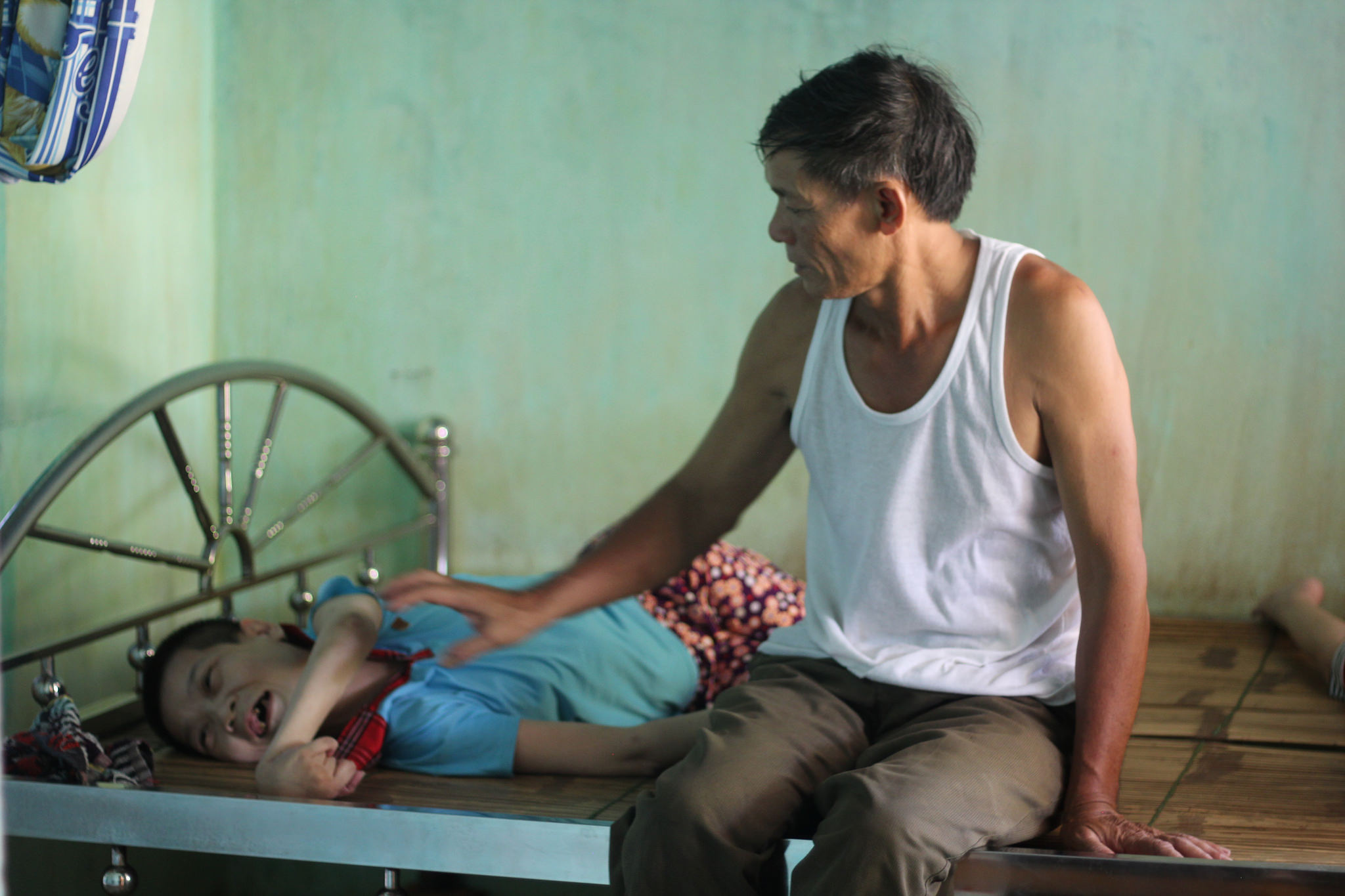 me leMr. Duc seems optimistic about his business, but the tone of our conversation shifts as the subject turns to his children. Phuong, No, and Lanh are getting “worse and worse,” Mr. Duc says, and due to his wife’s weakness he’s the only one who can properly care for them and “release their pain.” The children are now unable to leave their beds. In the past he’s taken them to doctors, Mr. Duc says, but “no one can help them.” Lanh, I learn, can actually use a smartphone to send basic text messages to make her needs known, and can use it to browse social media, watch movies, and otherwise keep herself occupied. Unlike her sisters, Lanh was able to go to school until she was 9 and is thus able to read and write. Phuong and No can understand speech to some extent, but cannot communicate outside of the groans we hear.
