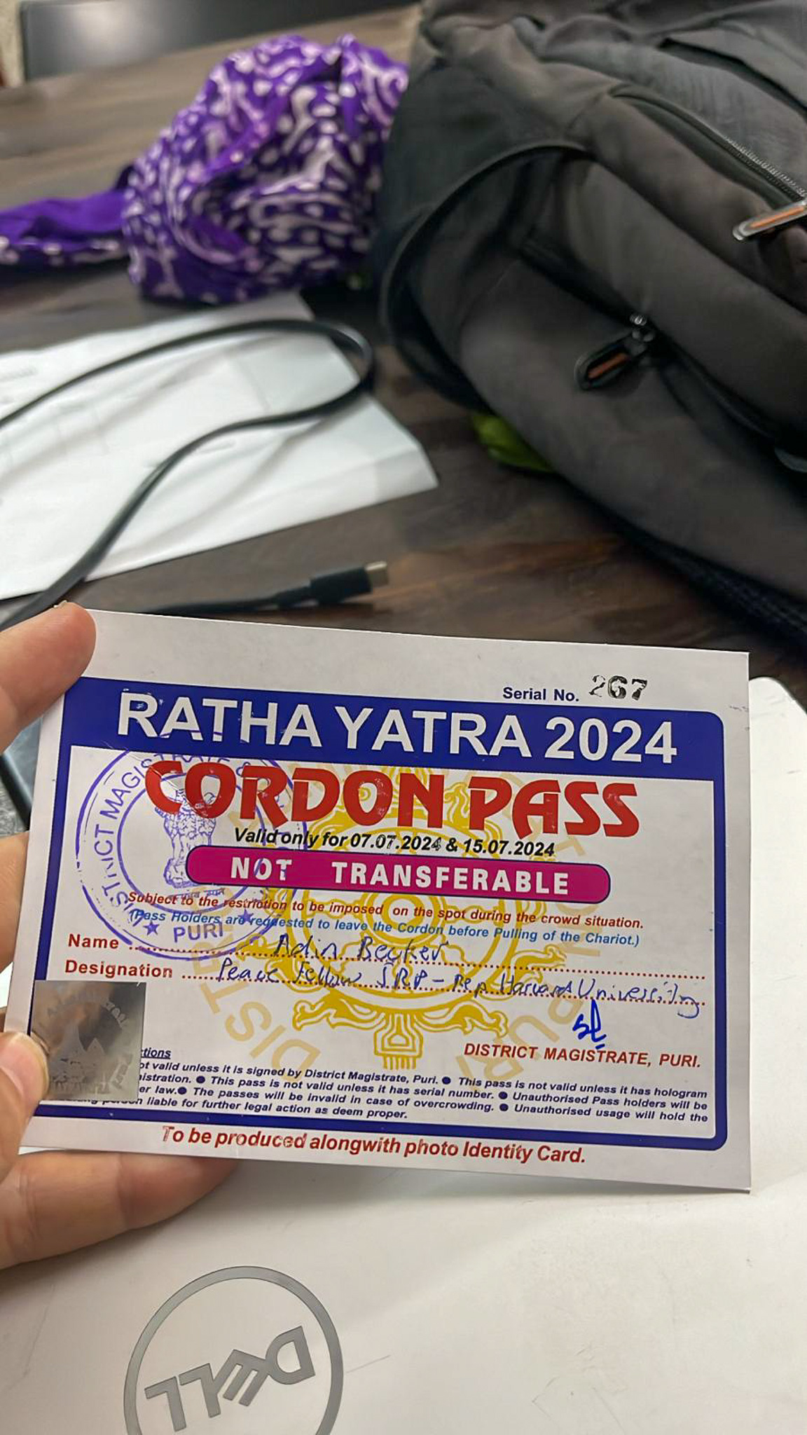 Naturally, I couldn’t pass up the chance to witness Odisha’s most significant festival. On the advice of an Indian friend from grad school, I wisely booked a hotel room in Puri months before my India trip. Little did I know I was in for a VIP experience. My friend had promised to “take care of me,” but I hadn’t grasped what this meant. The day before my departure, I was caught off guard when an MP’s executive assistant showed up at JRP’s office, calling me over to hand me a coveted Cordon Pass. These passes are like golden tickets to Ratha Yatra, granting access to restricted areas and offering unparalleled views of the proceedings – a luxury typically reserved for dignitaries and officials. As it turns out, my friend, currently on leave from the Indian Administrative Service to pursue a Master’s at Harvard, wields considerably more influence than I’d realized.