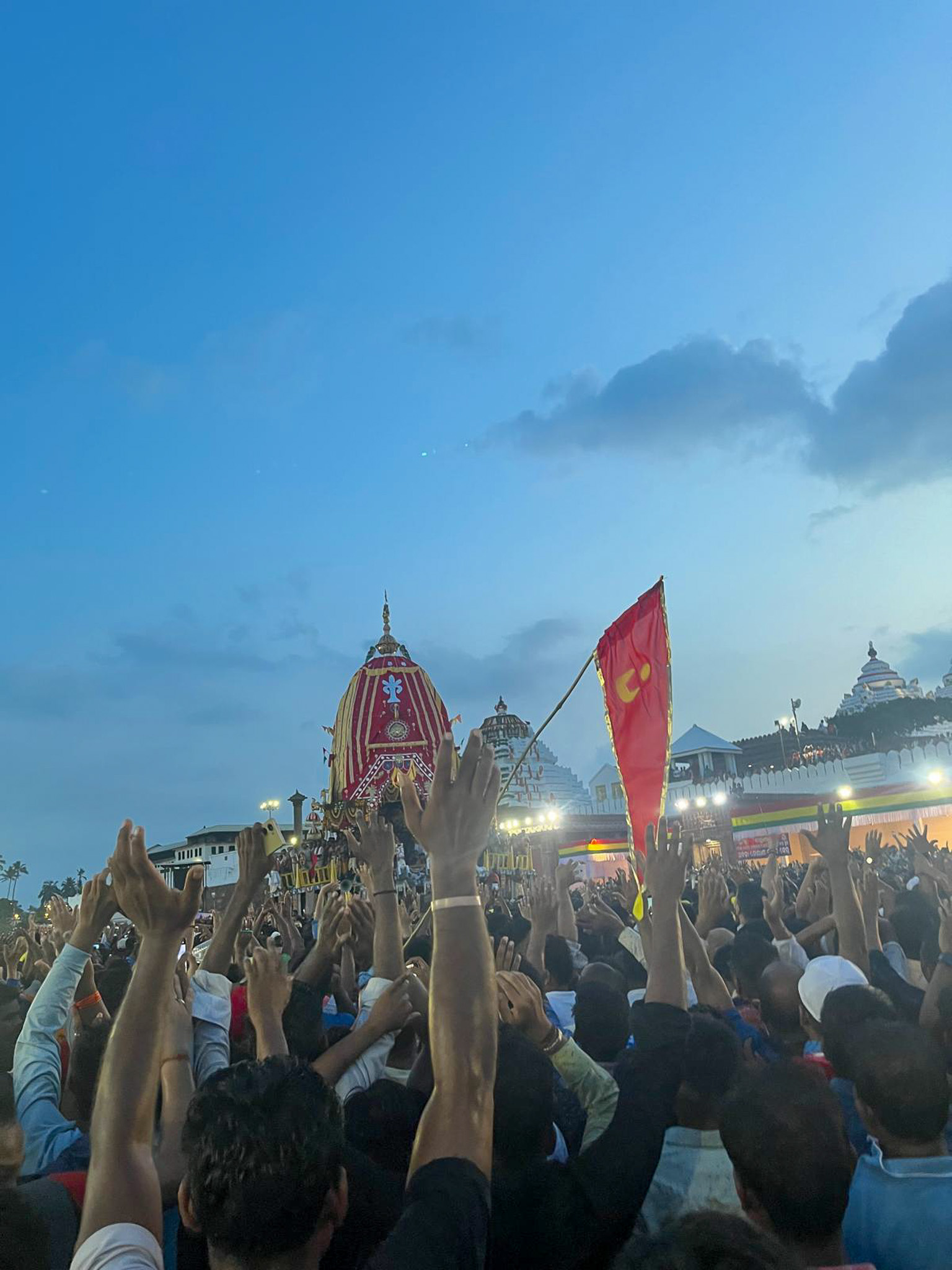 Over the next 4 or 5 hours, I rode waves of people up, down, and around the main street. I chased ropes attached to the massive chariots, joining in the thunderous chants of “Jai Jagannath!” – meaning “Victory to Jagannath!”. This powerful invocation is both a celebration of the deity and a cry of devotion. While one might think religious fervor is necessary to endure such an overwhelming event, I can attest that the sheer adrenaline rush of being there is enough to carry you through.