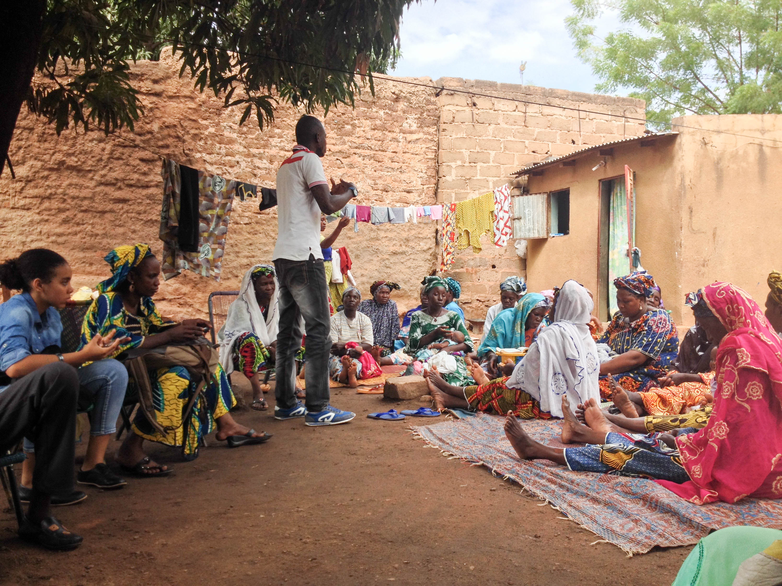 In Sotuba, community organizer Fanta Keita focused on child marriage and forced early marriage, which occurs when a girl is under 18 and the marriage is usually facilitated by her family. In the meeting, the women began by citing the reasons why families marry of their daughters. Some believe that young girls are easier to manipulate. Some are afraid that their daughters will lose their virginity before marriage, so they want to avoid having their daughters dishonor their family. Others engage in this practice because of poverty; giving their daughter away means she will be better taken care of.